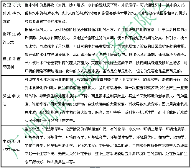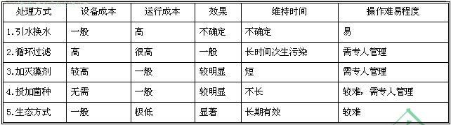 4.常規(guī)景觀水處理方式對比如下: