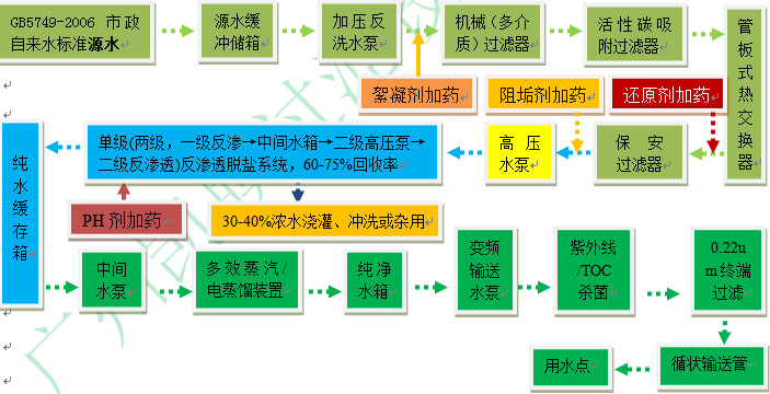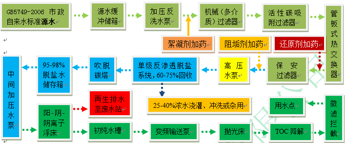 2.工藝流程二超純水系統(tǒng):軟水-UF前處理-RO- EDI-POLISHING-TOC降