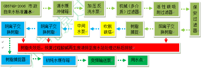 缺點:產(chǎn)水質(zhì)量低、酸堿耗量大,運行成本高,環(huán)境污染嚴重,屬于淘汰工藝。