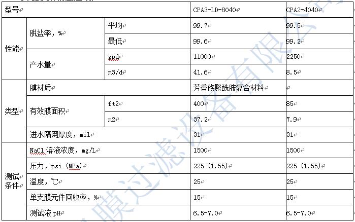 注意:產(chǎn)水量的偏差范圍一般在±15 %之內(nèi),有效膜面積的偏差范圍在±4%之內(nèi)。每一支膜元件在出廠(chǎng)時(shí)均包含一個(gè)濃水密封圈、一個(gè)連接適配器以及相應(yīng)的O型圈。全部膜元件均真空密封在聚乙烯 塑料袋中并添加不大于1.0 %濃度的亞硫酸氫鈉作為保護(hù)液。真空保護(hù)的膜元件最終貯存于紙箱中。